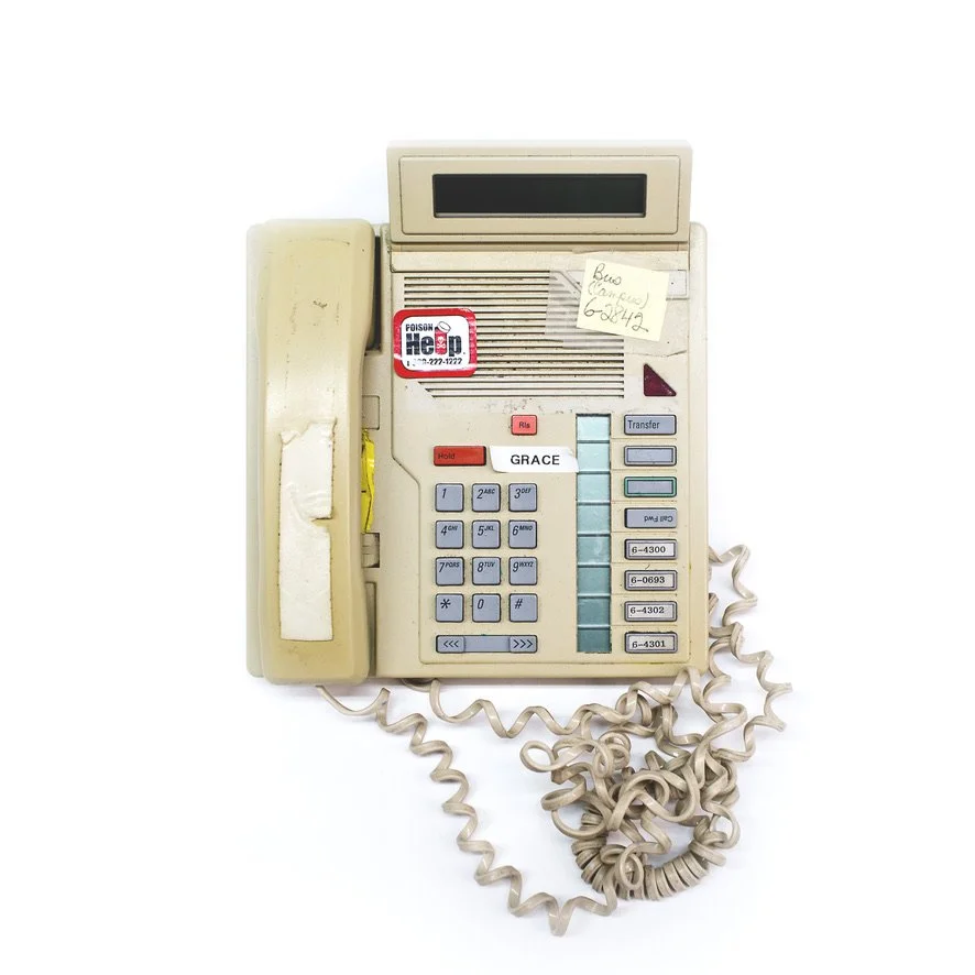Beginning as found objects I knew I needed to take some “headshots” of these phones. We tend to forget what a trace we leave on objects and spaces around us, especially those that help us communicate and pass information. There is a certain nostalgia built in for those who also grew up seeing these devices in use. But there is a liminal and fleeting quality with phones’ orderly, museum-like presentation. These phones were being disposed of as they no longer worked (or needed). I also found some phones which had little to no human trace on them, but I was surprised how many had an effect on me, feeling both sadness and comedic value with each of these phones. I choose to give a final tribute, perhaps an obituary photo for each of them. With both chaotic or the tender loving care treatments from their previous owners, the collection suggests a lot about who the users were, and how us humans tend to deal with things marked for disposal.